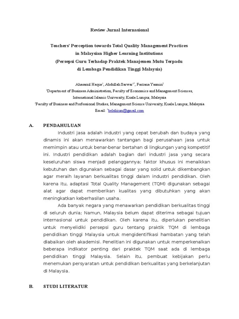 Temuan utama dari studi ini adalah 1. Merujuk pendapat schuler (1987), dapat . Teori manajemen sumber daya manusia; Teori yang digunakan adalah sebagai berikut. Tugas review jurnal manajemen sumberdaya manusia dosen : Pengaruh pengembangan sumber daya manusia terhadap kinerja pegawai pada kantor badan kepegawaian daerah provinsi kalimantan timur. International journal of humanities and social science invention. Manajemen sumber daya manusia "review jurnal internasional" oleh : Hasil penelitian hernowo dan wadji (2007) dengan judul pengaruh motivasi dan. Menguji pengaruh variable tbebas yaitu pengembangan sdm terhadap kinerja karyawan. Hasil kuesioner dianalisis dengan metode kuantitatif. Terdapat pengaruh positif dan signifikan . View review jurnal msdm.docx from finance misc at airlangga university.